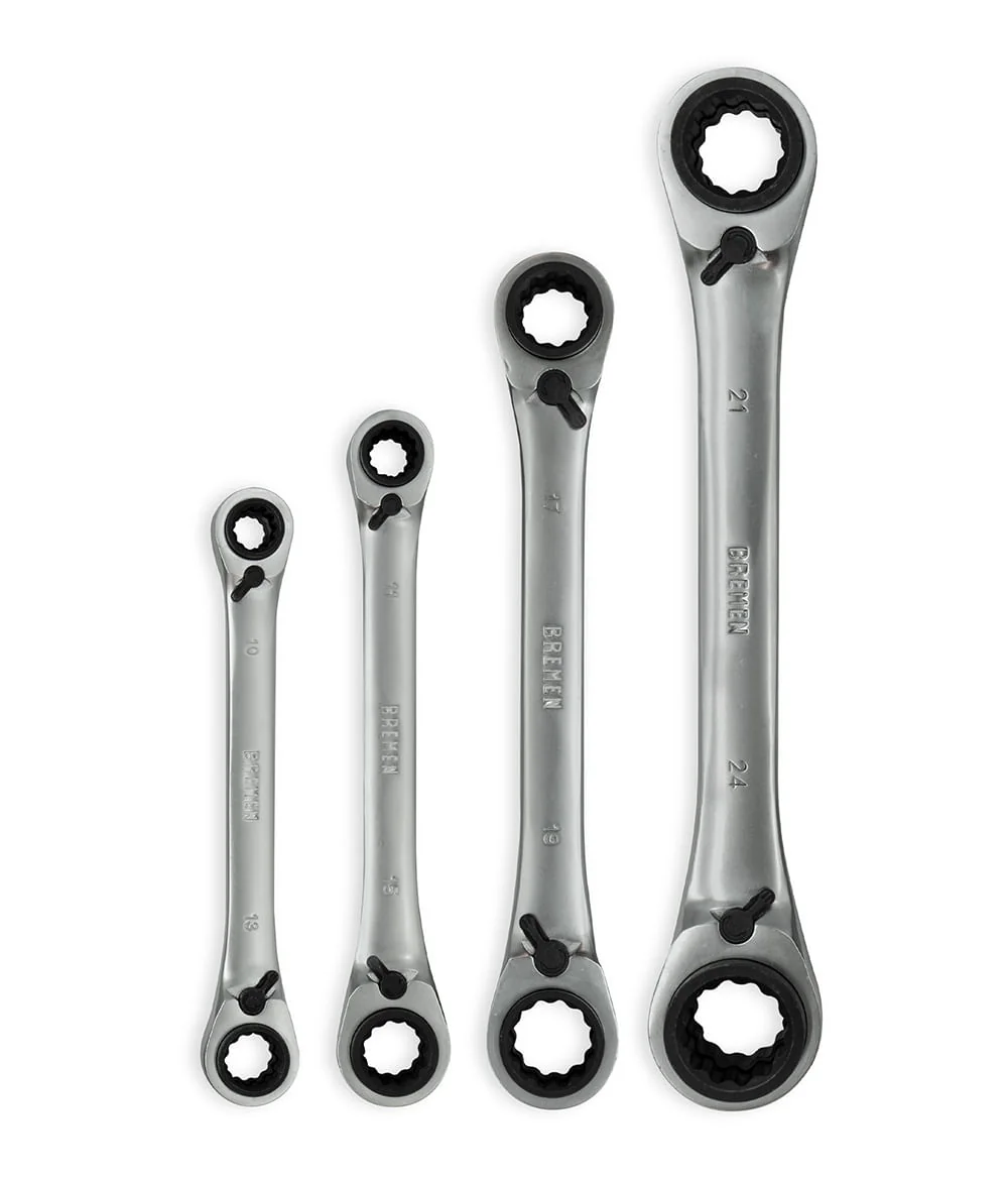 Juego de llaves combinadas con crique reversible 4 en 1.